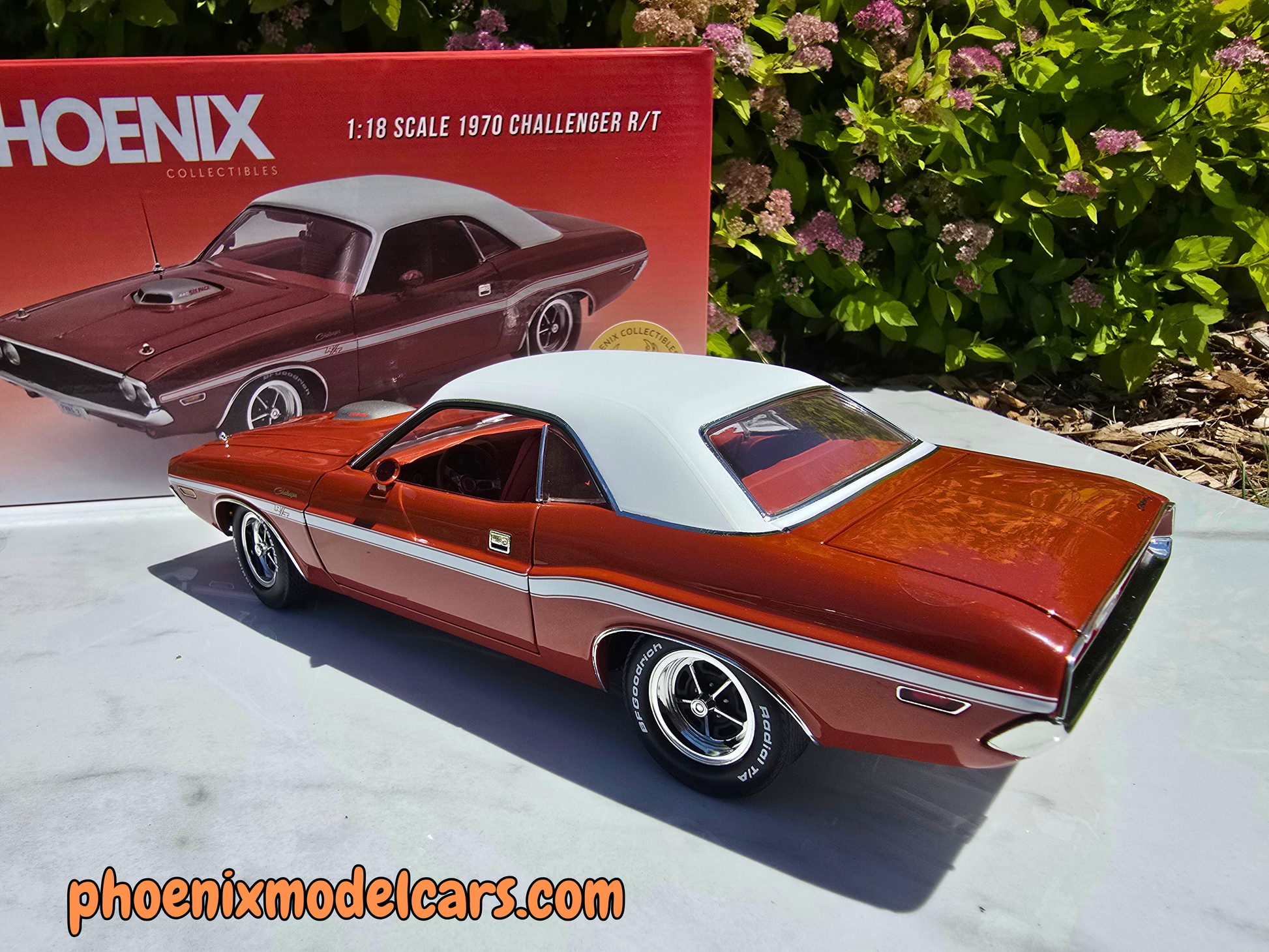 Phoenix Collectibles is proud to announce its second exclusive release! A 1970 Dodge Challenger R/T finished in FK5 Deep Burnt Orange Metallic. This is one absolutely stunning 1/18 scale diecast metal model.